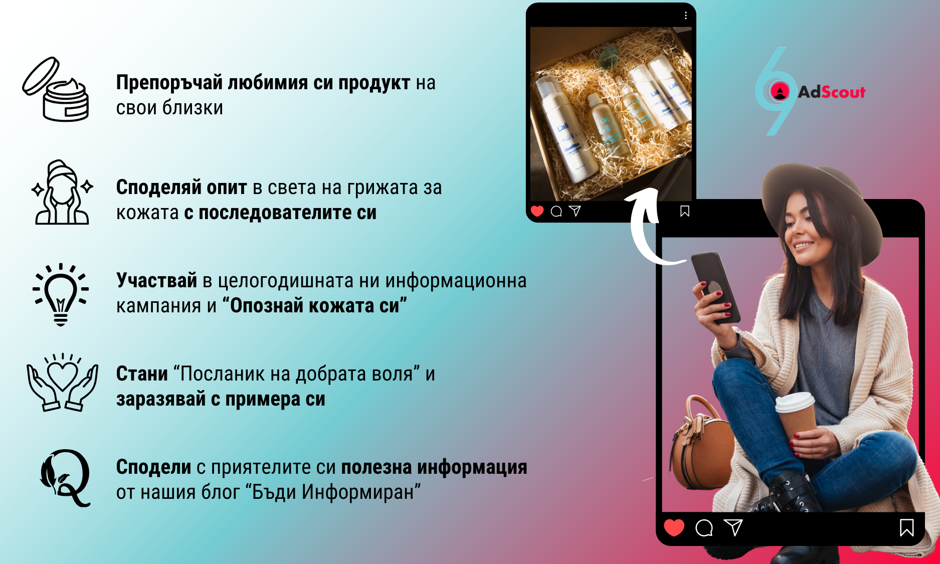 Персонално видео, снимка или лично послание, което да добавиш към препоръката си? Повече за платформата, която използваме, за начините на проследяване в реално време и нейните иновативни функционалности за достигане до аудитории, можеш да откриеш тук: AdScout*РЕГУЛЯРНО ПЛАЩАНЕ