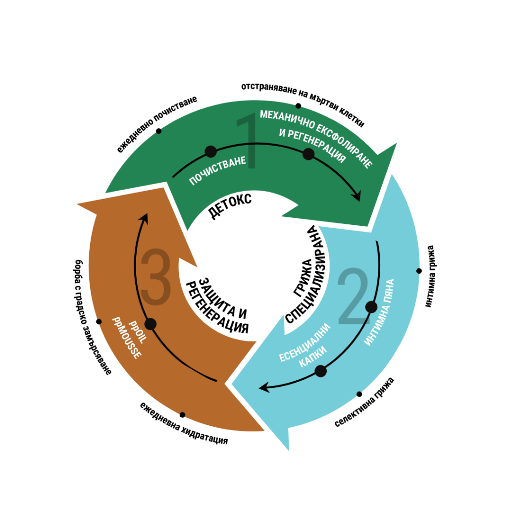Ритуал за деликатно наслагване на нужните ти продукти, с точните съставки, последователност, честота и начин на използване за цялостна грижа, за постигане на дълготраен ползотворен ефект за здраве и красота на принципа „отвътре-навън“.