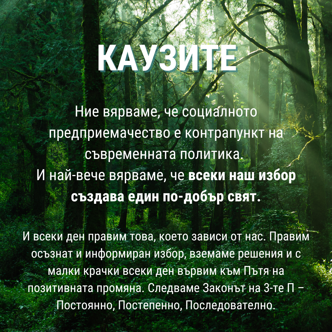 Ние се грижим за здравето, красотата и кожата на хората. Грижим се за майката Земя и вземаме отговорни и информирани решения. Споделяме знанията, опита и познанията си като професионалисти, но на достъпен и разбираем език за широката аудитория. Създаваме чисти продукти с благодарност и грижа към Земята и Хората.