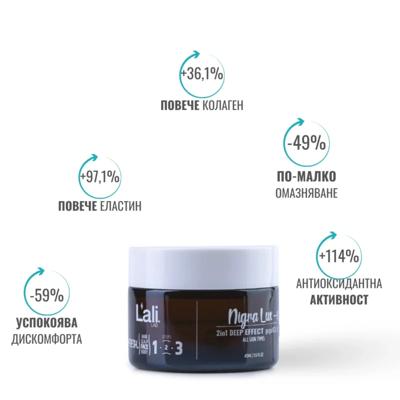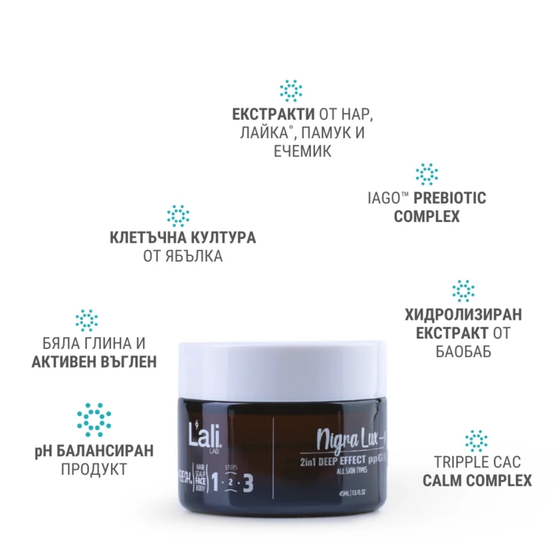 PREMIUM 2-В-1 ГЕЛ-МАСКА С ДЪЛБОК ЕФЕКТ | Nigra Lux+ | 45мл PREMIUM 2-В-1 ГЕЛ-МАСКА С ДЪЛБОК ЕФЕКТ | Nigra Lux+ | 45мл