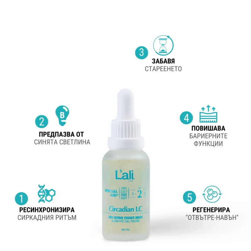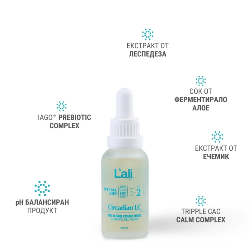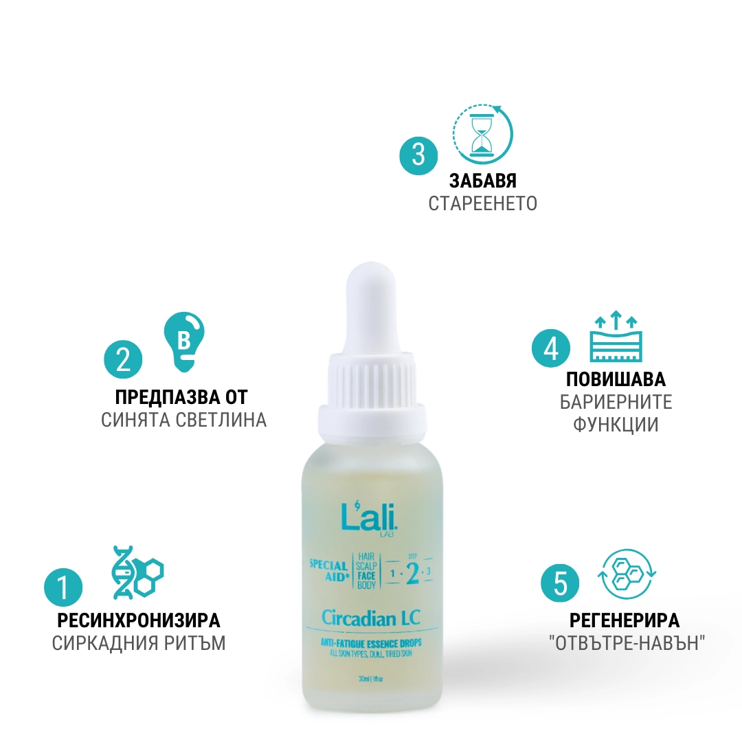 АНТИ-ФАТИГ ЕСЕНЦИАЛНИ КАПКИ ЗА ЛИЦЕ | Circadian LC | 30мл