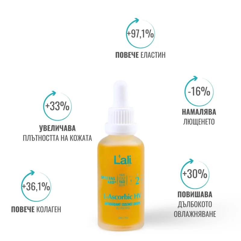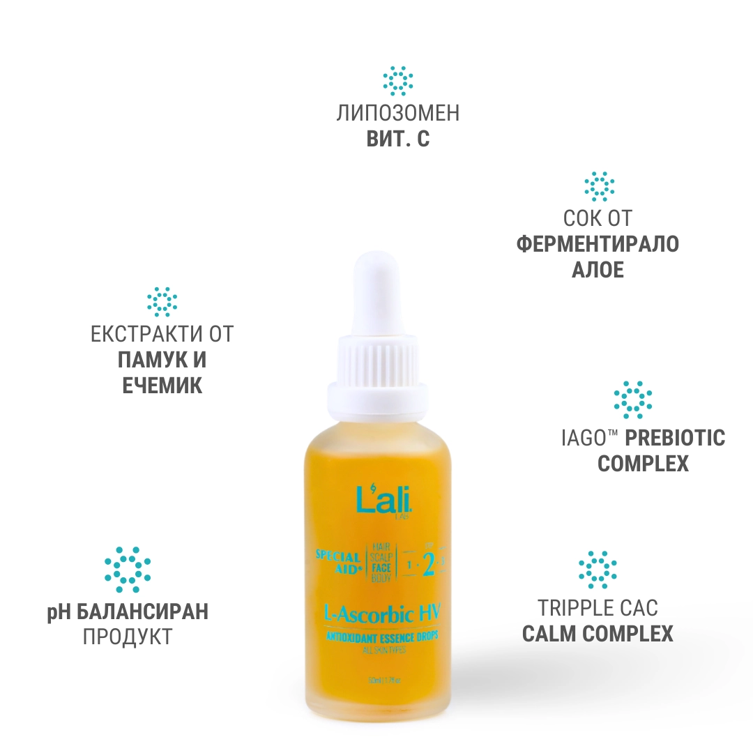 L’ascorbic HV | Антиоксидантни есенциални капки за лице са натурална премиум формула, предназначена за ежедневна подкрепа на кожата срещу свободни радикали и външни стресови фактори.