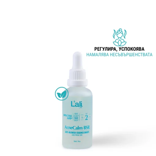 AcneCalm BSR | anti-blemish essence drops Серия: SPECIAL AID® Обем: 50мл След почистване на кожата, на преден план излизат специфичните за всеки организъм несъвършенства. За борба с тях използвай комплекс от специализирани пребиотични продукти с интензивен ефект и концентрирана сила, които отговарят на всички нужди. Формулиран с активни съставки, които балансират дисбиозата на кожния микробиом, намаляват зачервяванията и кожните лезии, свързани с акне.