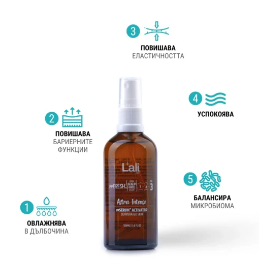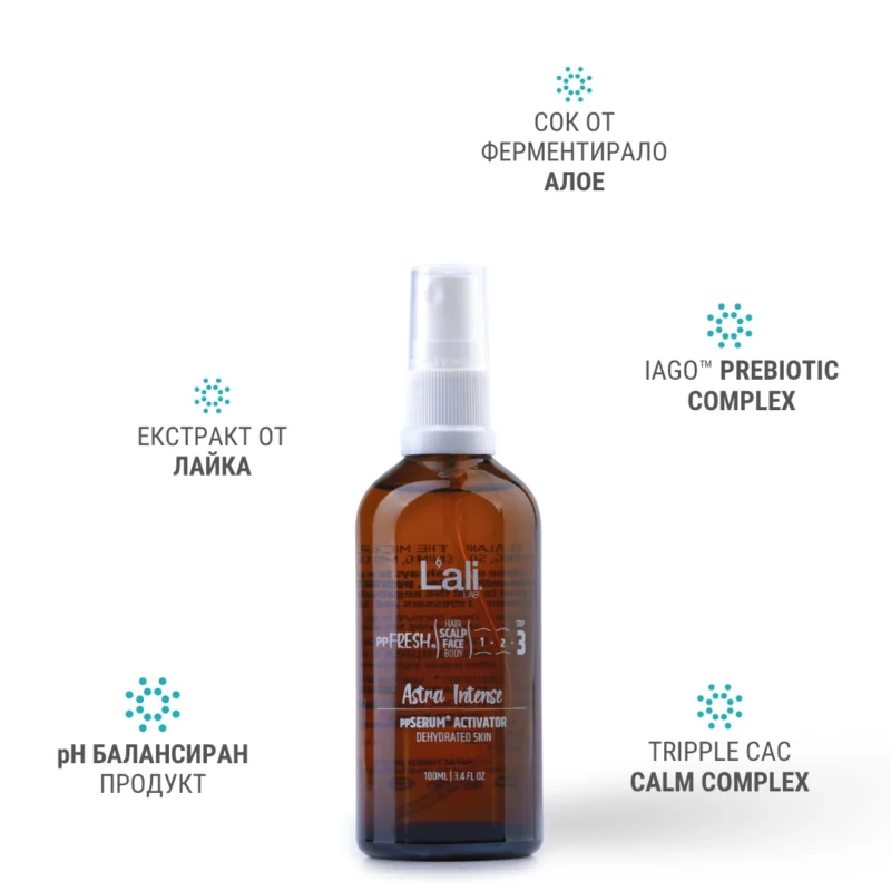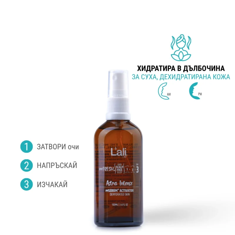 Astra Intense ppSERUM ACTIVATOR Серия:ppFRESH® Обем: 100мл Предвид вредите, които нанася градското замърсяване и модерния начин на живот, използването на допълнителна защита е крайно необходимо. Финишираща грижа за защита, подхранване и подсилване на собствените регенеративни системи на принципа отвътре-навън! Предназначен за използване по всяко време на деня, винаги в комбинация с Daylight Rosales, ppSERUM® Day Moonlit Rosales, ppSERUM® Night или Bold MEN 24H, ррSERUM® Day&Night. Използвай за борба с негативните последствия от съвременния начин на живот, стресорите от околната среда и замърсяванията, по всяко време на денонощието.