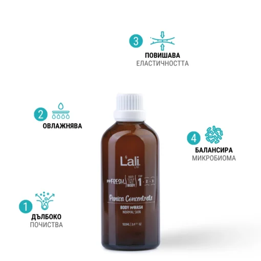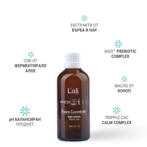 Punica Concentrate BODY ppWASH Серия: ppFRESH® Обем: 100мл Всяка грижа започва с почистване. Предназначена за премахване на замърсявания от кожата на тялото. Използвай за отстраняване на негативните последствия от съвременния начин на живот, стресорите от околната среда и замърсяванията.