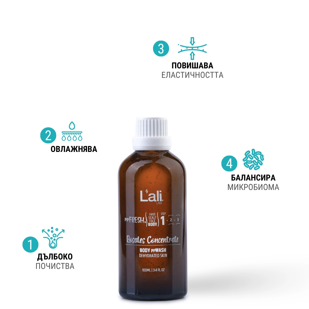 + Rosales Concentrate BODY ppWASH е концентриран продукт, така че не е нужно да използваш голямо количество.