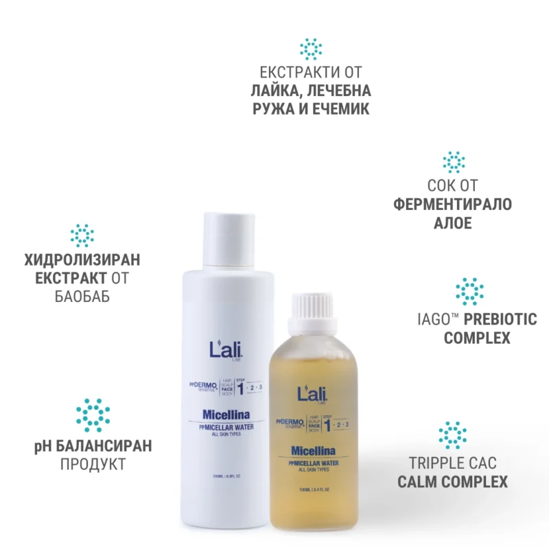 Екстракт от Ечемик; Екстракт от Лайка˚; Екстракт от Лечебна Ружа˚; Екстракт от Баобаб, Сок от ферментирало Алое˚; Екстракт от Памук; IαGO™ Prebiotic Complex; triPPle cac™