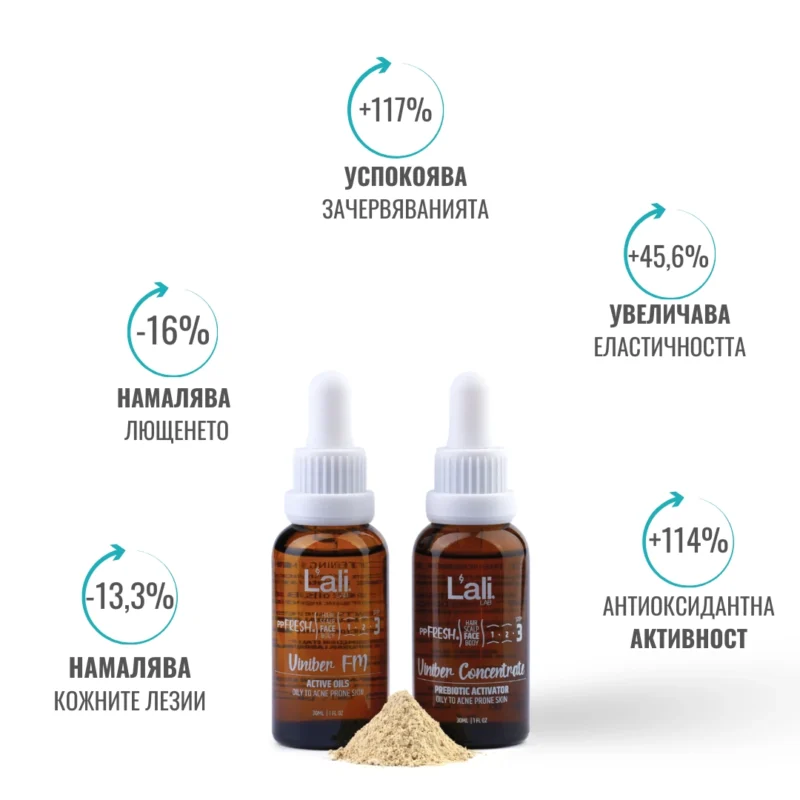 Намаляват продукцията на себум (-49%, in vivo тест)
