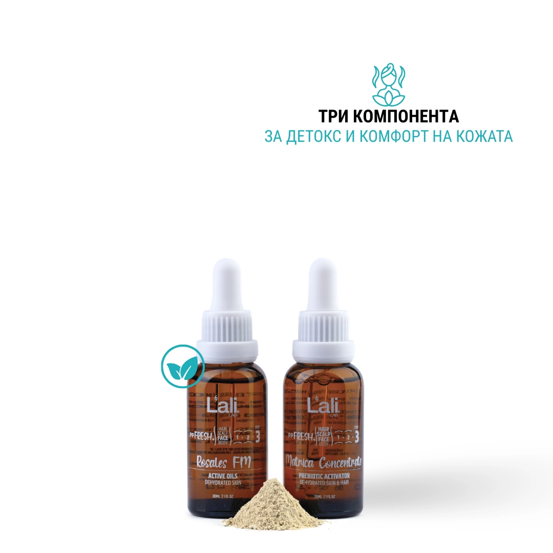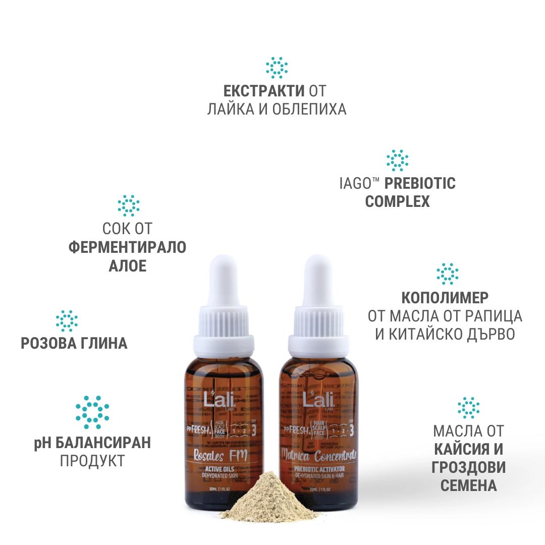 Екстракт от Лайка˚; Екстракт от Облепиха; Сок от ферментирало Алое˚; D-Пантенол; Масла от Кайсия˚; Масла от Гроздови˚ семена; Розова глина; Цвят от Лайка; Куркума; Глицериди и мастни киселини от Бадем, Пореч, Лен и Маслина; IαGO™ Prebiotic Complex; triPPle cac™