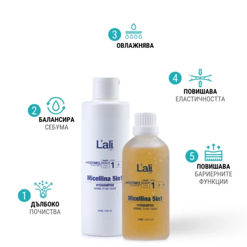 Micellina 5in1 | ppSHAMPOO, normal to oily scalp Серия: ppDERMO® SENSITIVE Честота на употреба: Ежедневно Обем: 100мл | 200мл Всяка грижа започва с почистване. За да могат селектираните за теб активни съставки да достигнат в дълбоките слоеве на кожата е необходимо да бъдат премахнати замърсяванията от околната среда, мастни наслоявания и остатъци от козметични продукти. Предназначен за отмиване на всички замърсявания, следствие на негативните ефекти от съвременния начин на живот, стресорите от околната среда и други видове замърсявания.