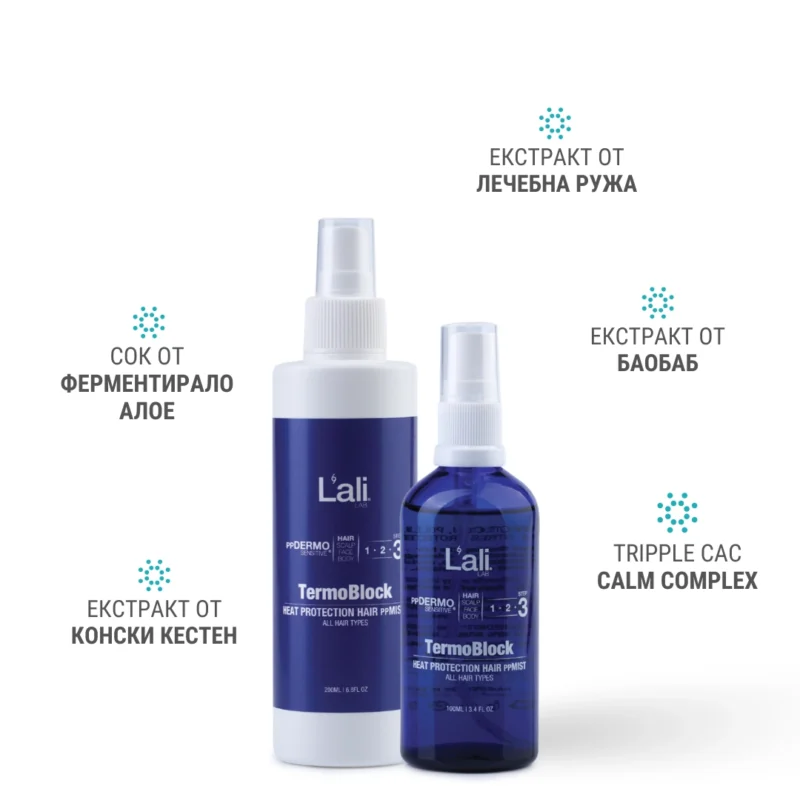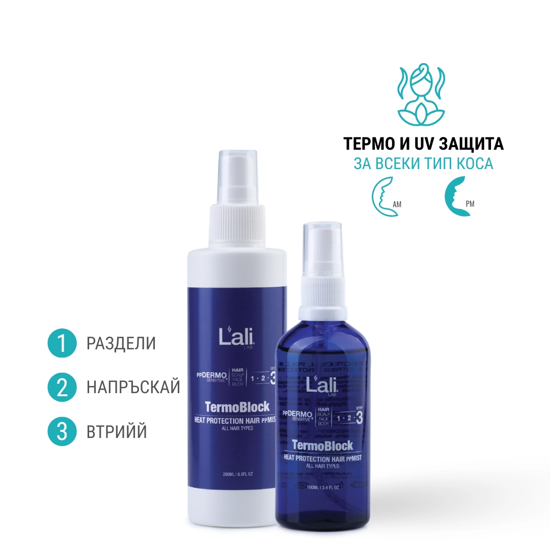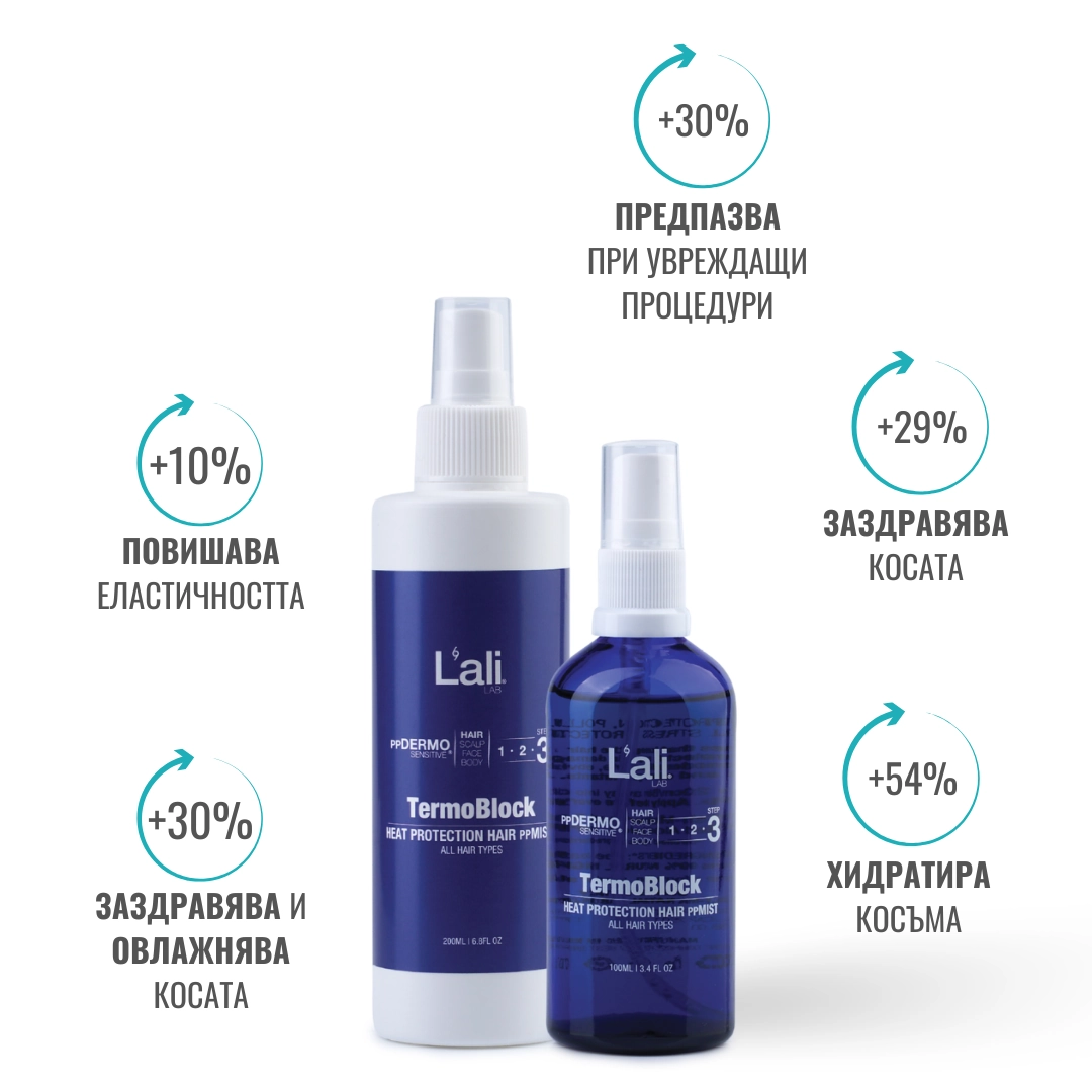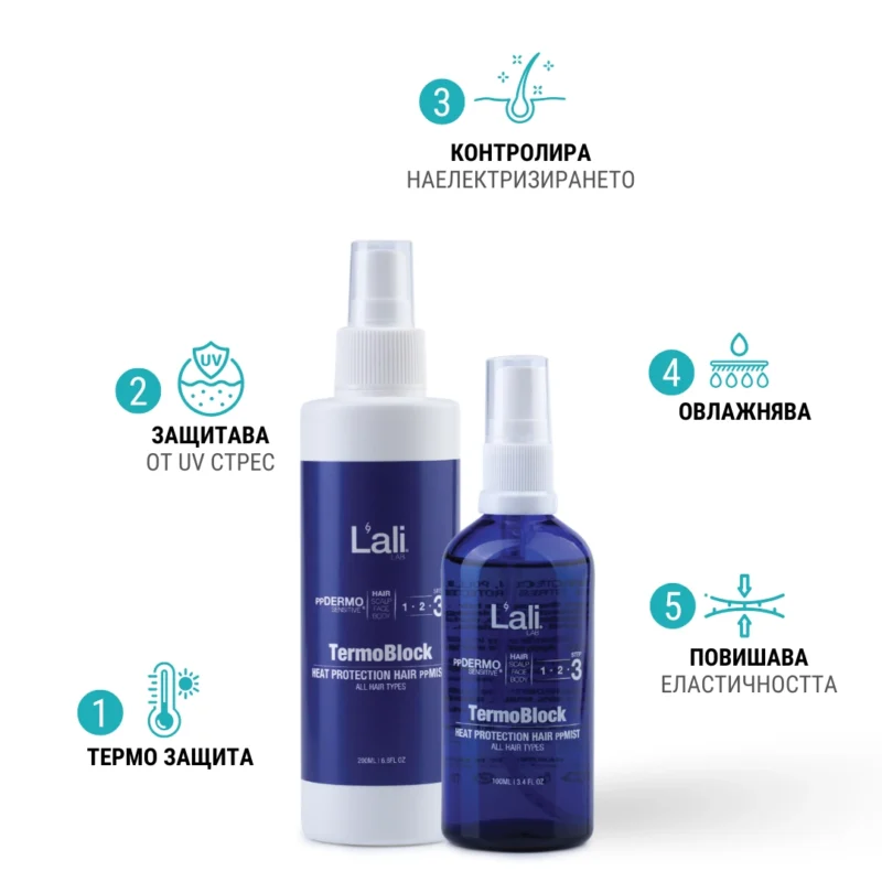 TermoBlock | HEAT PROTECTION HAIR ppMIST Серия: ppDERMO® SENSITIVE Обем: 100мл | 200мл Предвид вредите, които нанася градското замърсяване и модерния начин на живот, използването на допълнителна защита е крайно необходимо. Финишираща грижа за защита, подхранване и подсилване на собствените регенеративни системи на принципа отвътре-навън. Формулиран с активни съставки, които поддържат косата хидратирана при стресови условия. Защитават и възстановяват увредената коса и неутрализират негативните ефекти от съвременния начин на живот, стресорите от околната среда и замърсяванията.